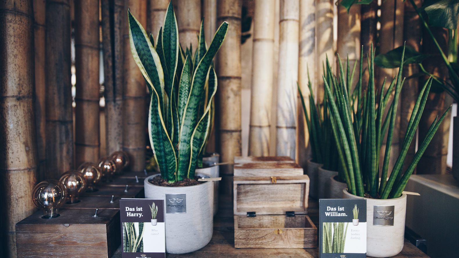 Mit James, dem Philodendron, Bruce, dem Kaktus, oder auch Bill, dem Geldbaum, findet hier jeder Mann eine Pflanze, mit der er voll und ganz grün werden kann.